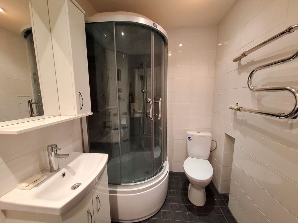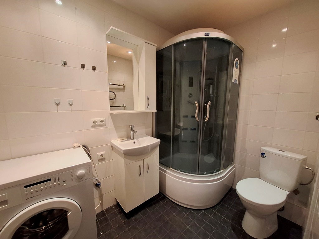 Большой просторный совмещенный санузел, душевая кабина, стиральная машина
